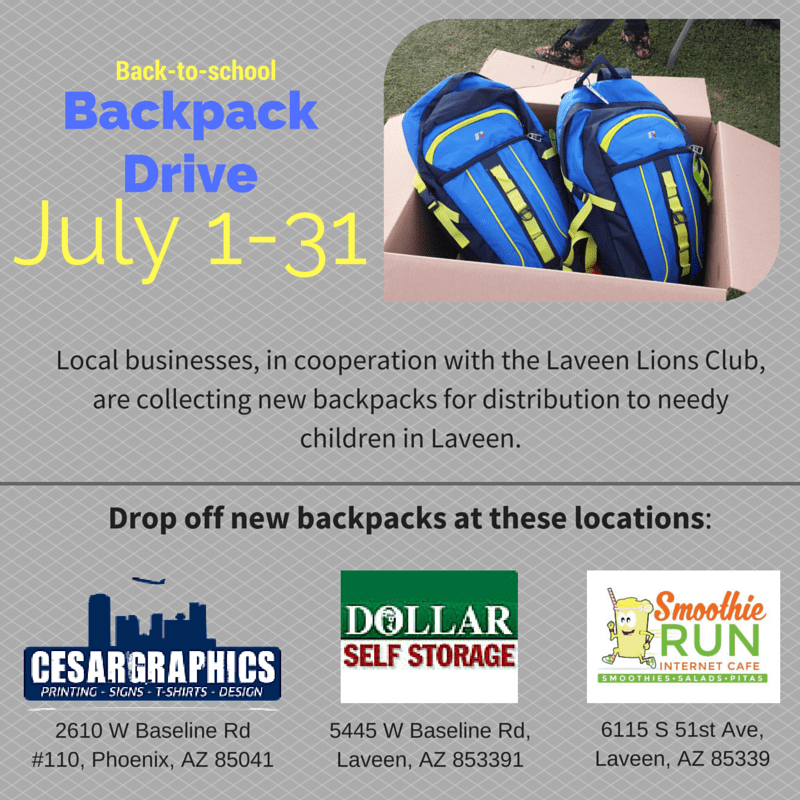 Multiple local businesses in Laveen are coming together to collect donated backpacks to give to children in Laveen.